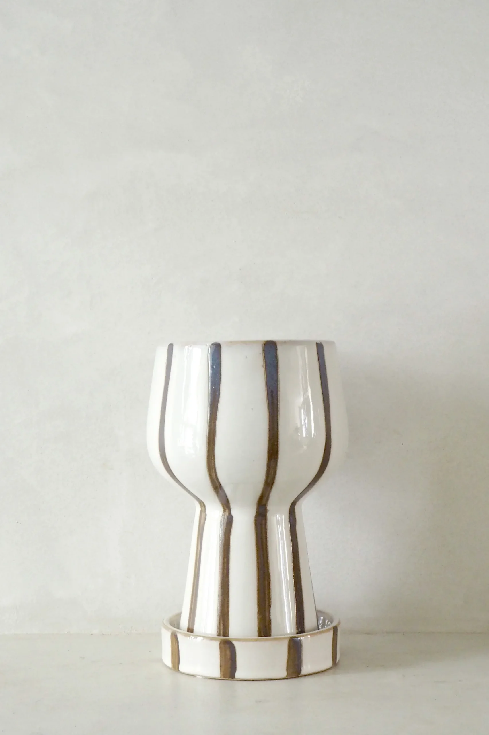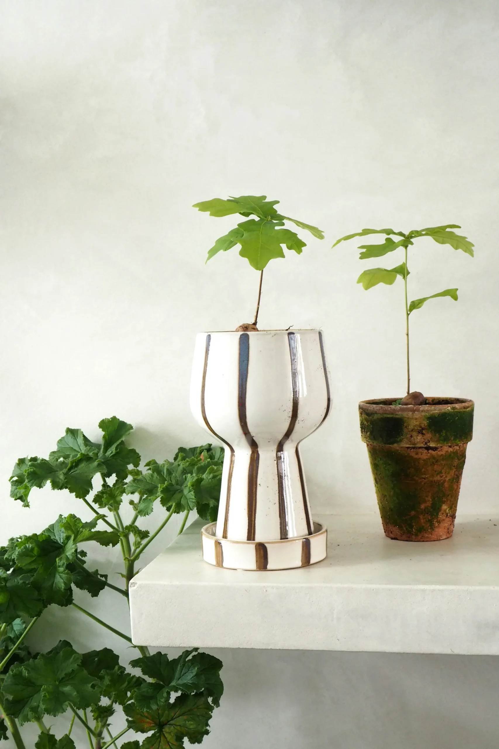 Krukken har ikke drænhul. Vi anbefaler at du kommer et lag lecakugler i bunden af krukken, hvis du planter direkte i den.