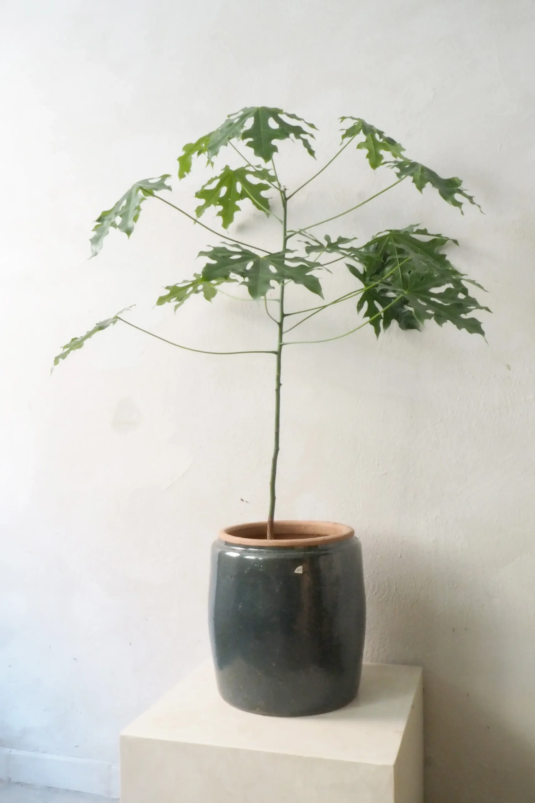 Berit krukken er en håndlavet krukke, der kommer i en flot grønblå glasur. Med potten følger et keramiklåg, som ikke er glaseret, og som kan bruges som låg eller underskål. Krukken minder i stilen om de gamle syltekrukker og er velegnet til gulvplanter og små træer.