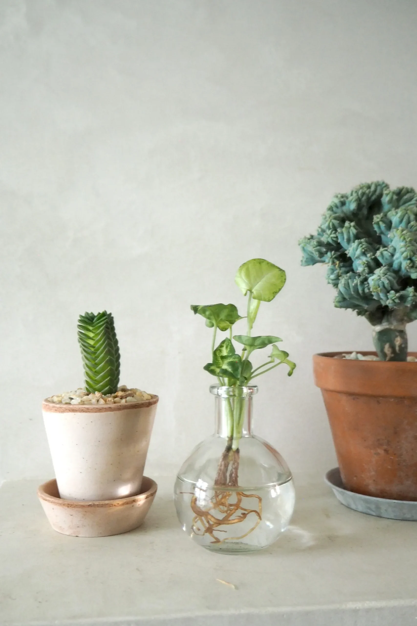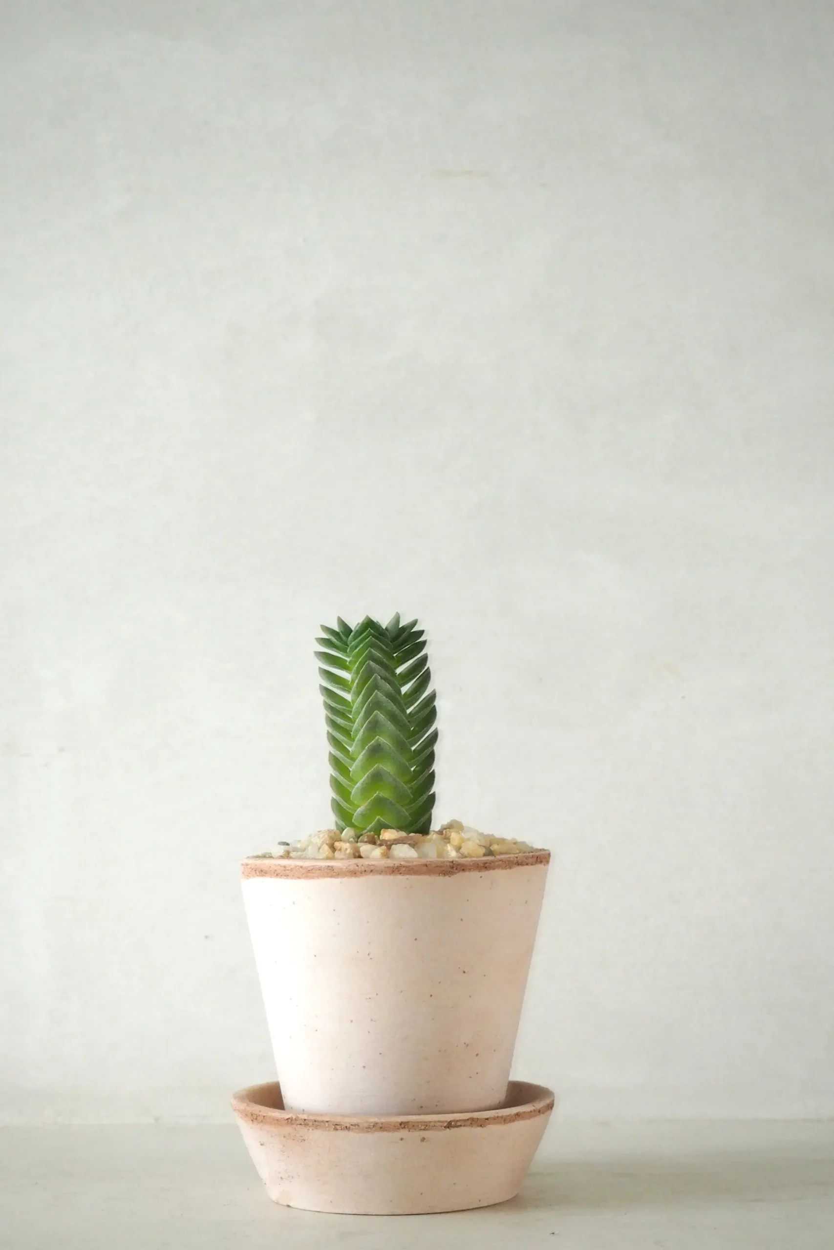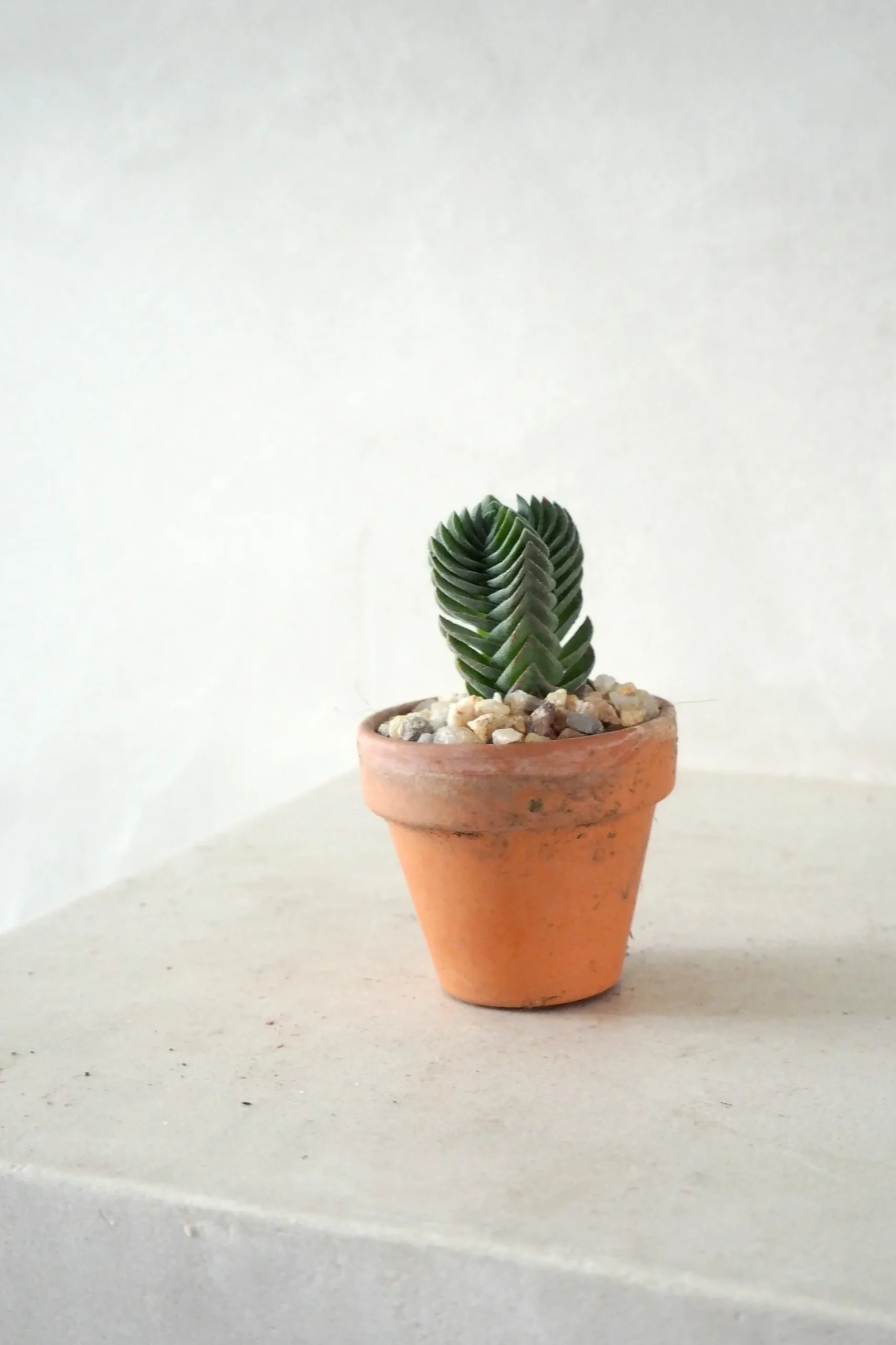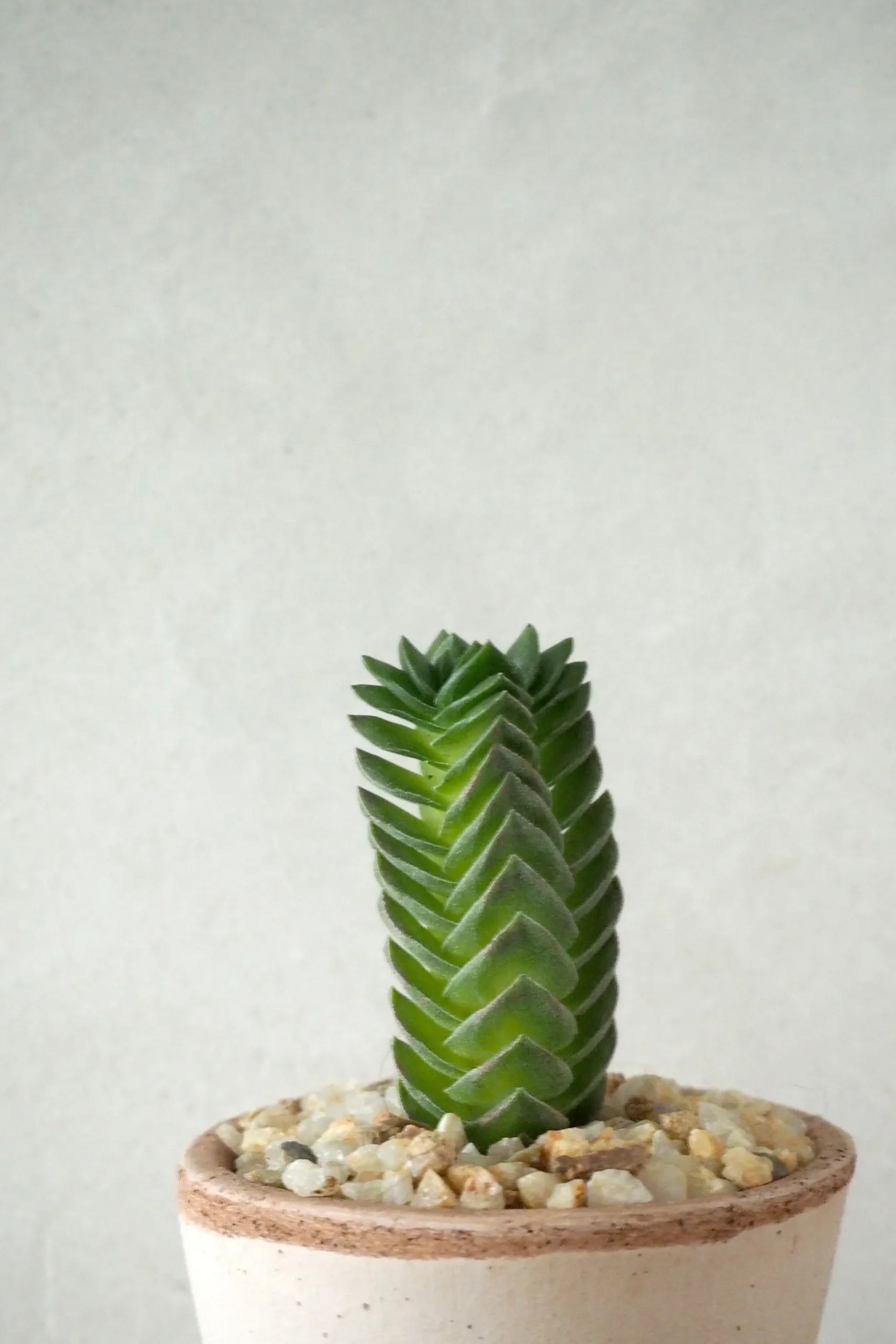 Crasualla cv. Buddhas Temple er en sjov og anderledes lille sukkulent. En hybrid mellem to crassulla arter. Plante bliver aldrig særlig stor. Kan over sommeren blomstrer med små lyserøde blomster.