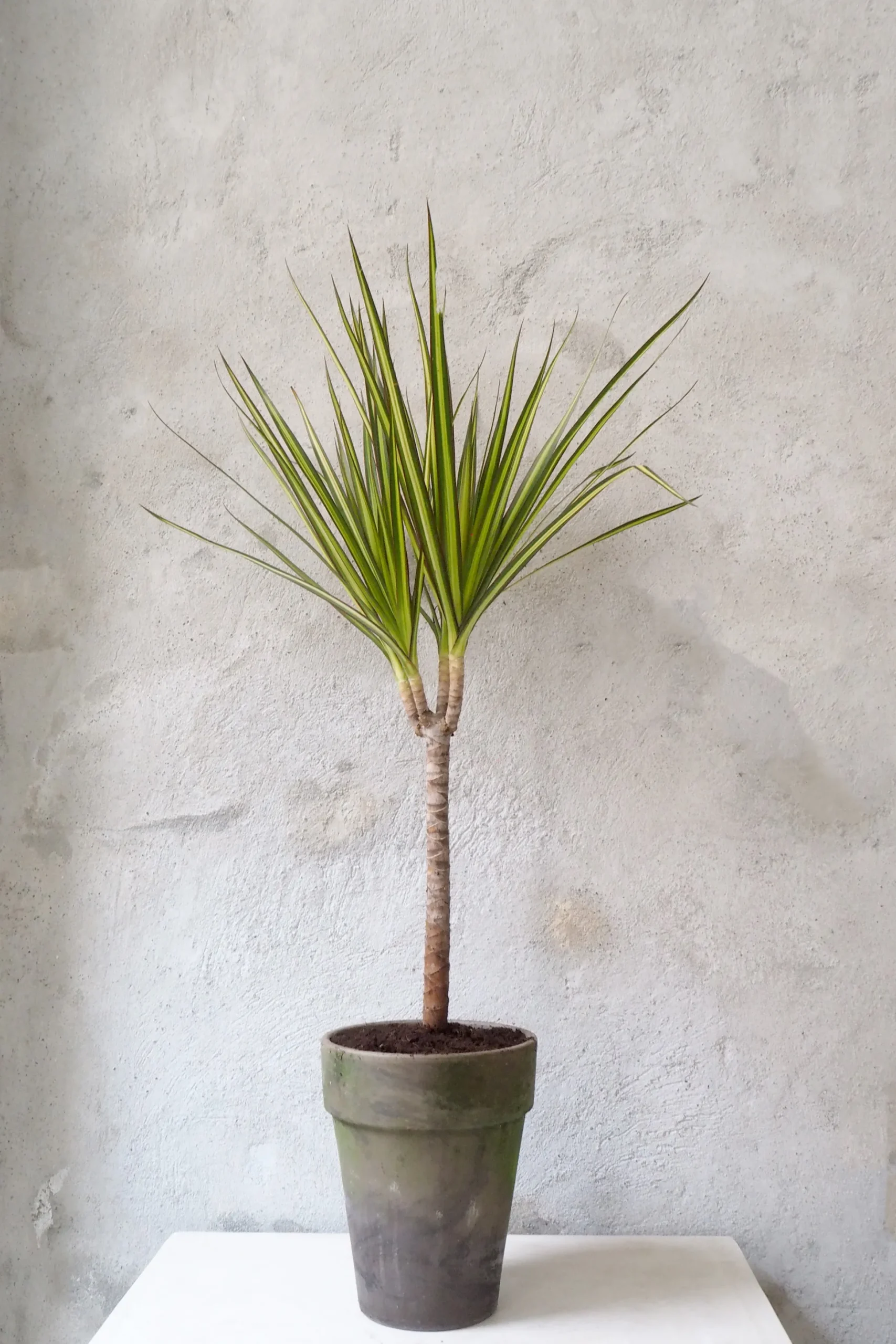 Dracena renser luften og trives bedst i et stabilt miljø uden træk. Fjern tørre blade løbende for at holde planten flot og sund.