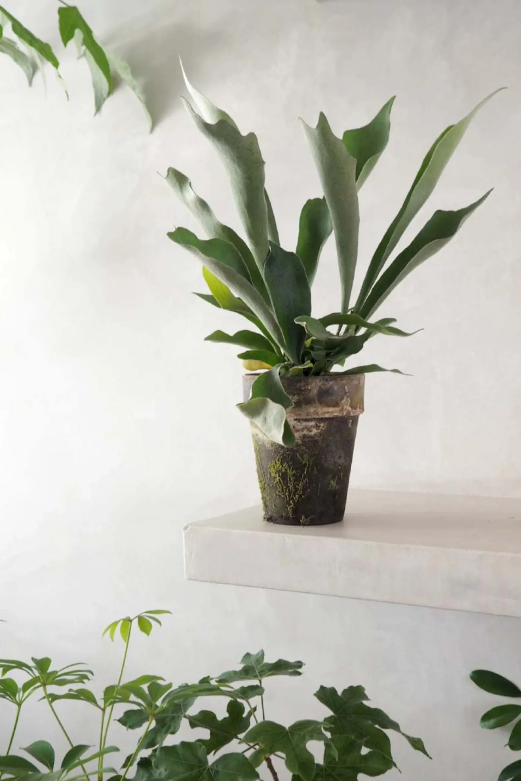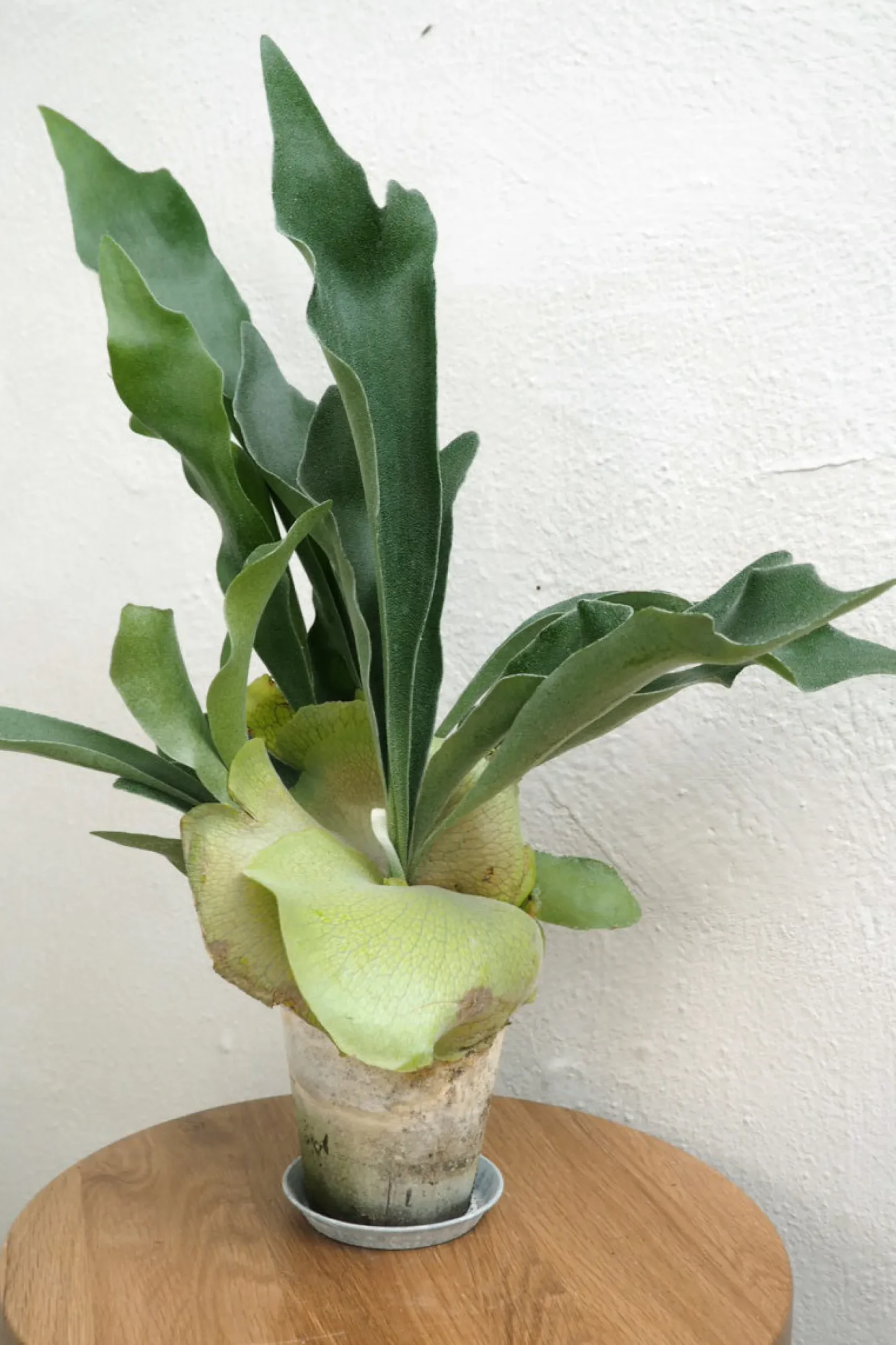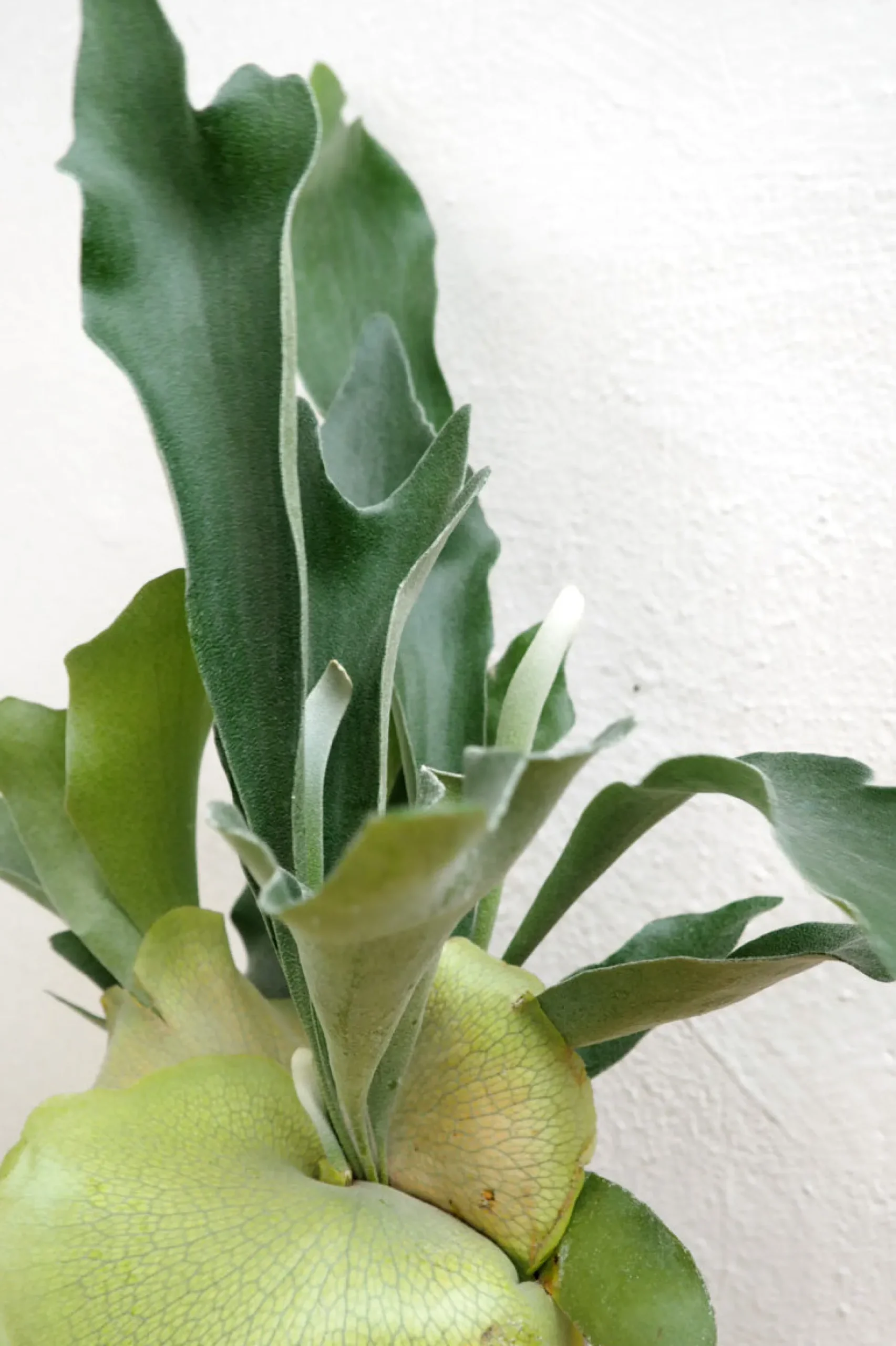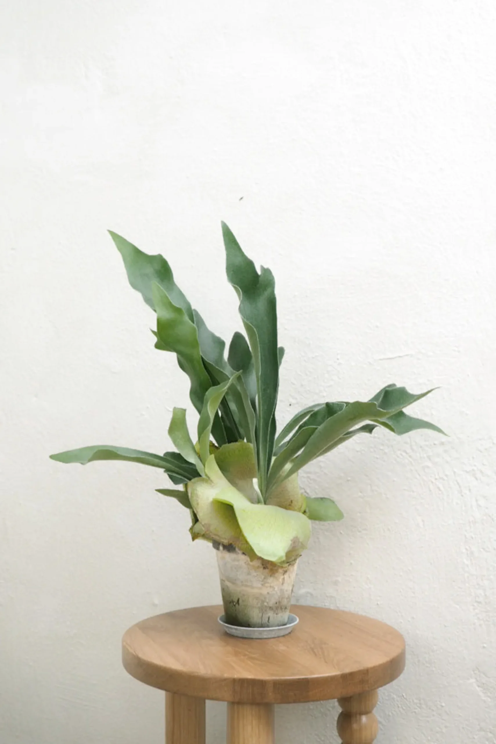 Vanding: Vand moderat og lad jorden tørre let ud mellem vandinger. Hjortetakbregnen optager også fugt gennem bladene, så forstøv den jævnligt for at øge luftfugtigheden.