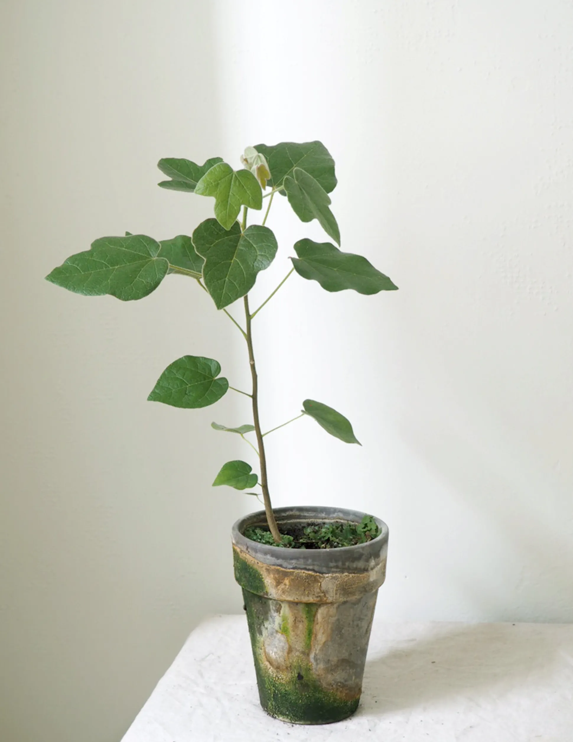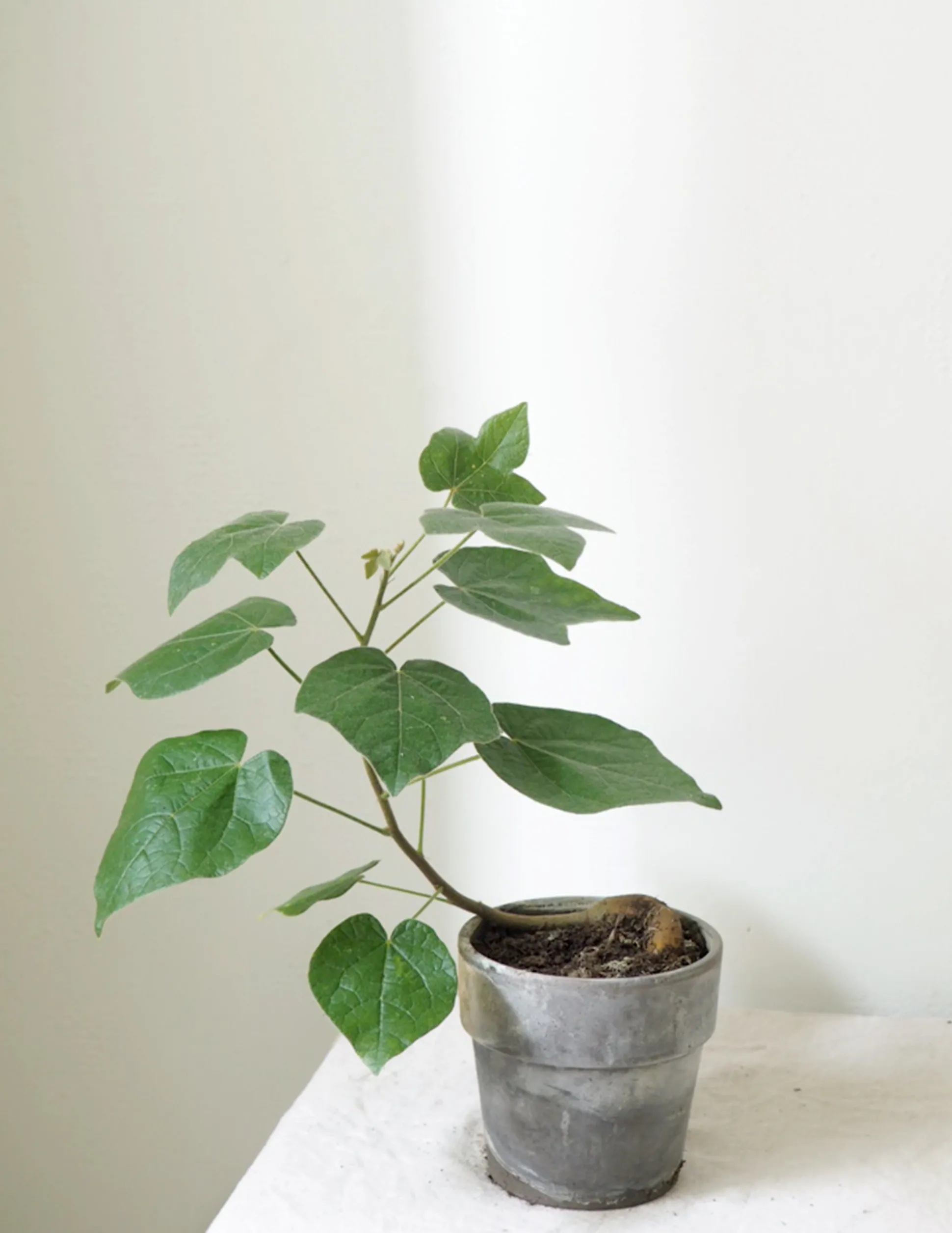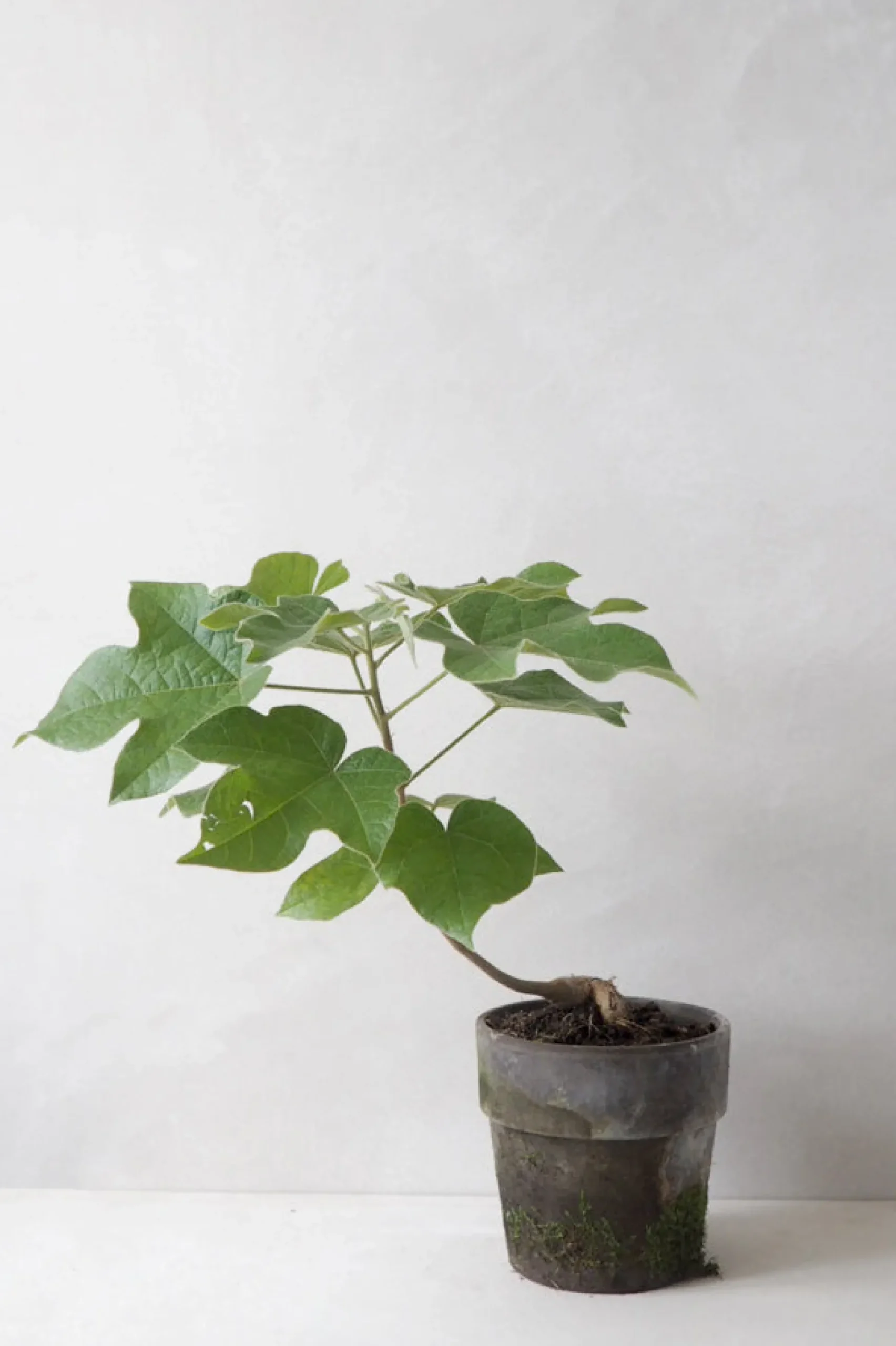 Det Australske Kærlighedstræ (kaldet Brachychiton på latinsk) er et elegant og smukt træ. Der er en lethed over den simple stamme med de karakteristiske blade, som har gjort den til en af de mest populære planter hos os lige nu. Vores danske avler har fire forskellige slags, der adskiller sig i bladenes udseende. Dette Australske kærlighedstræ har femfingrede blade og en tekstillignende struktur i overfladen. Går under kælenavnet Little Kurrajong (Brachychiton bidwillii på latinsk).