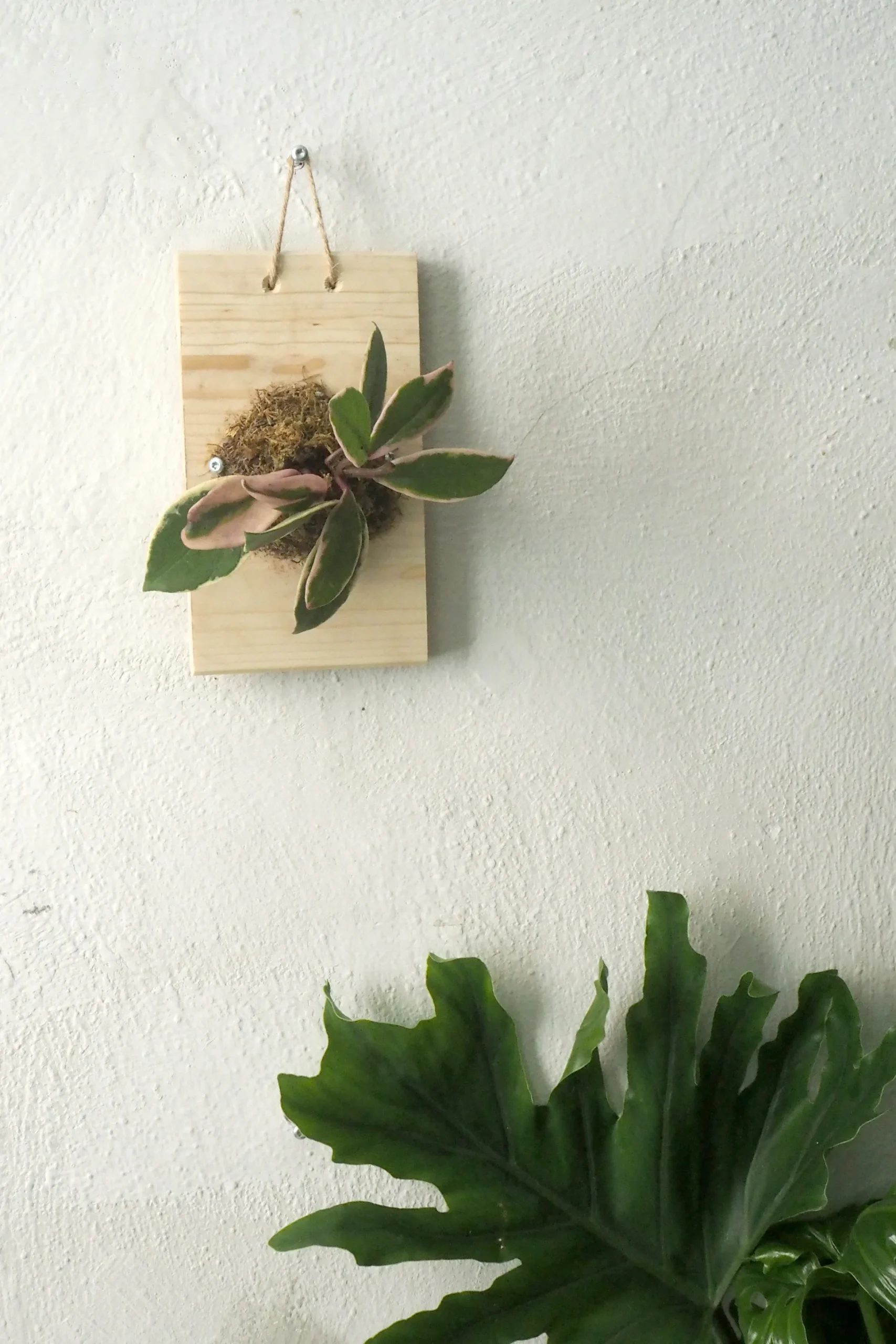 Et plantetrofæ med Hoya Pink flamingo – en elegant og levende vægdekoration, hvor den smukke, slyngende plante er monteret på en dekorativ plade.