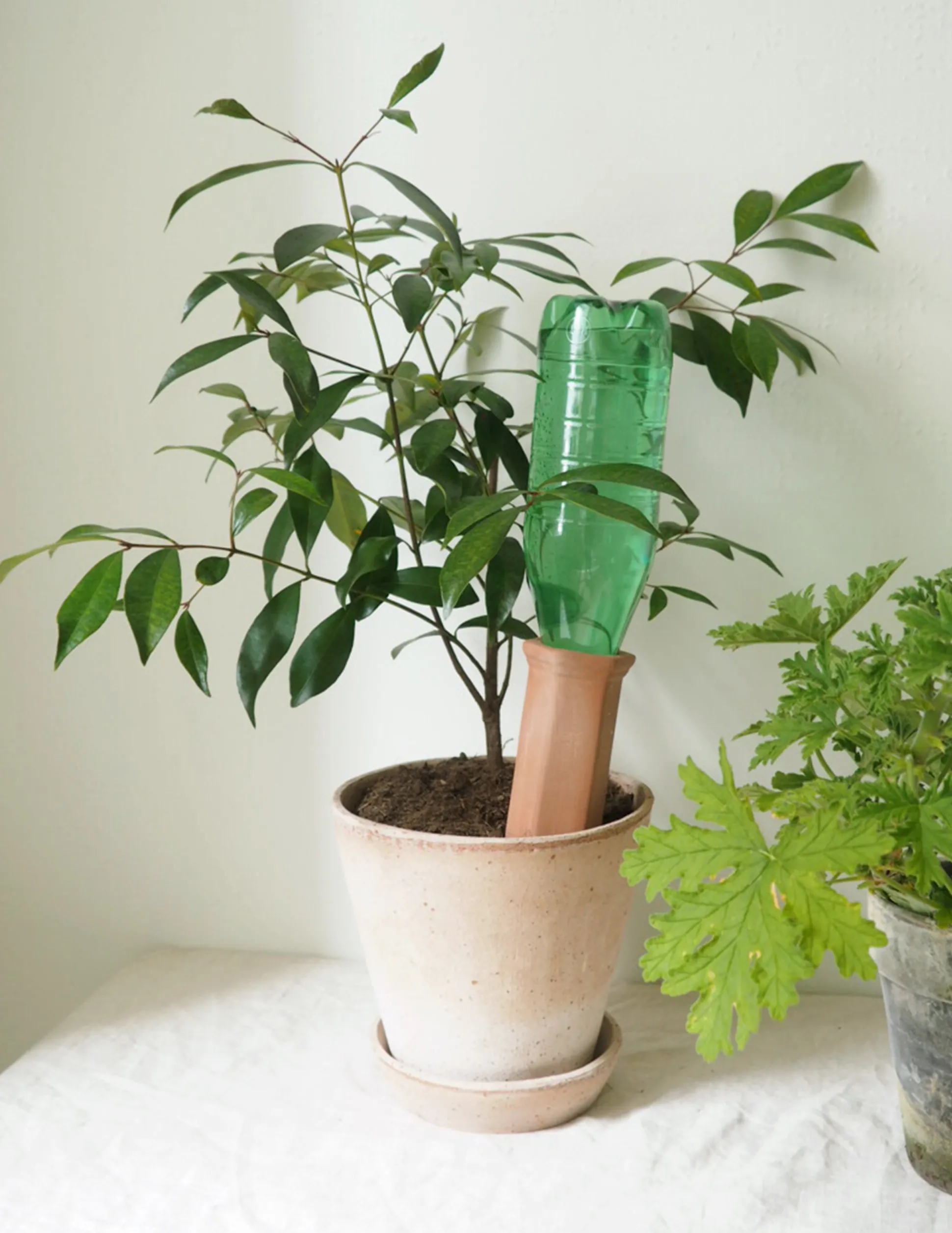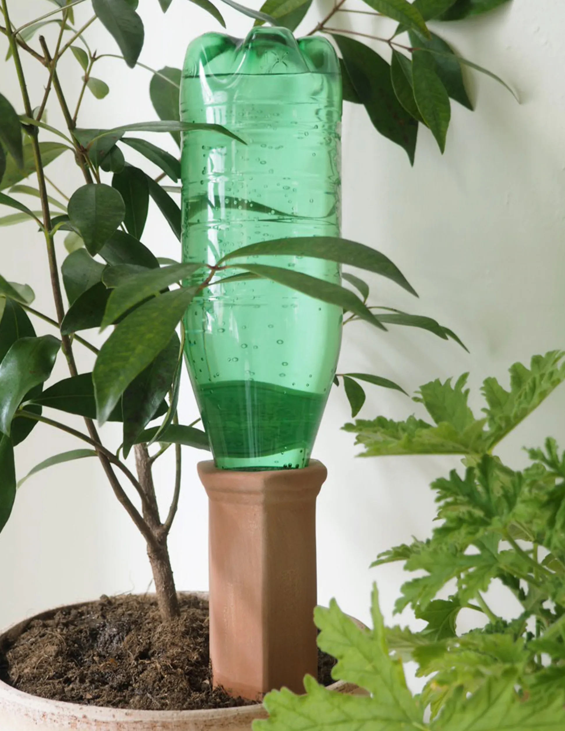 Simpel selvvandingscylinder i terracotta, perfekt til hvis du skal på ferie eller ofte glemmer at vande dine planter. Cylinderen sættes i jorden og fyldes derefter med vand. Herefter vil vandet stille og roligt trænge ud gennem leret og gøre jorden fugtig, i takt med at planten optager vandet. Skal du være væk i en længere periode kan du med fordel fylde en flaske med vand og sætte i cylinderen med bunden i vejret.