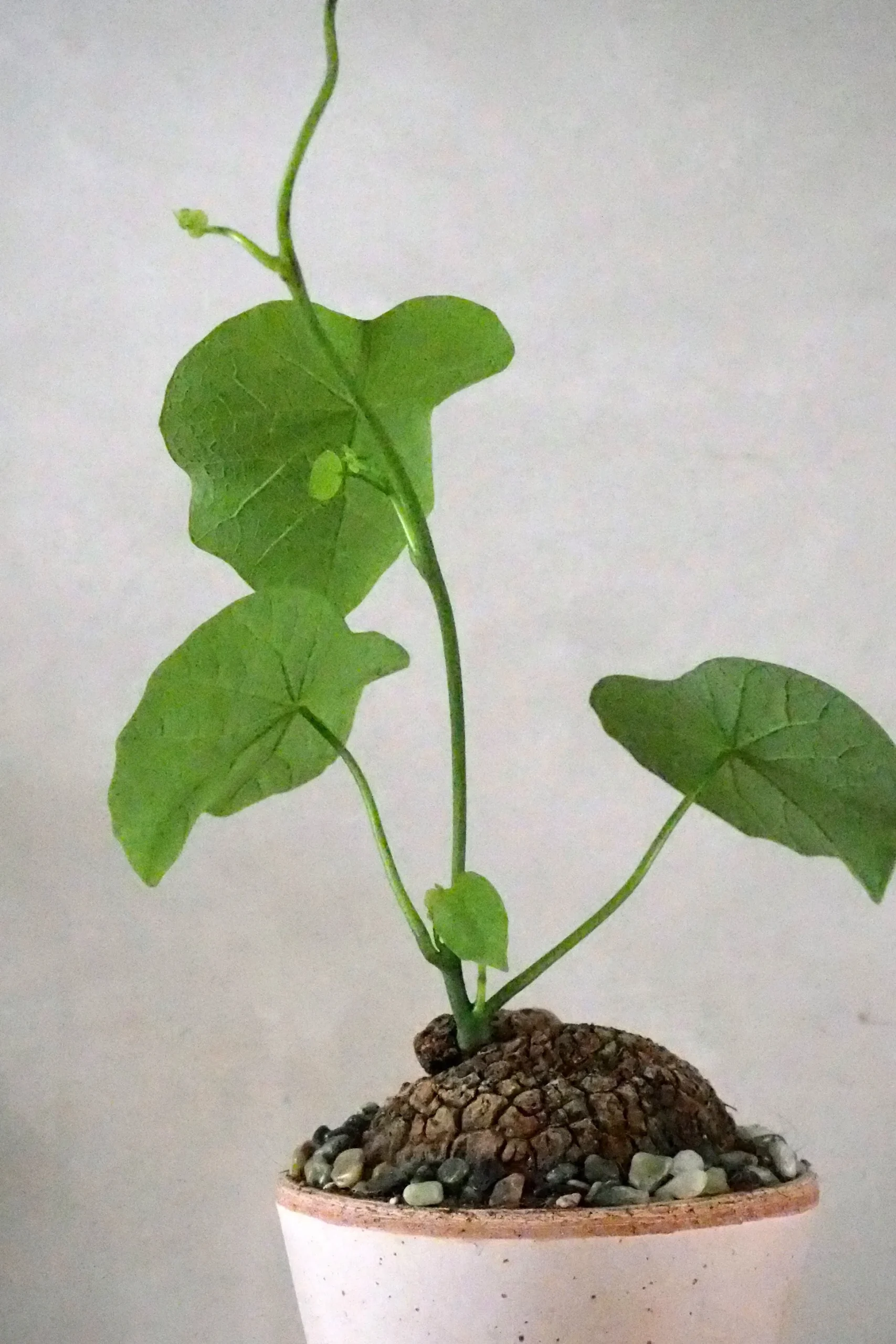Stephania suberosa er en fascinerende plante med en rund, knoldet caudex og fine, klatrende stængler med dekorative blade