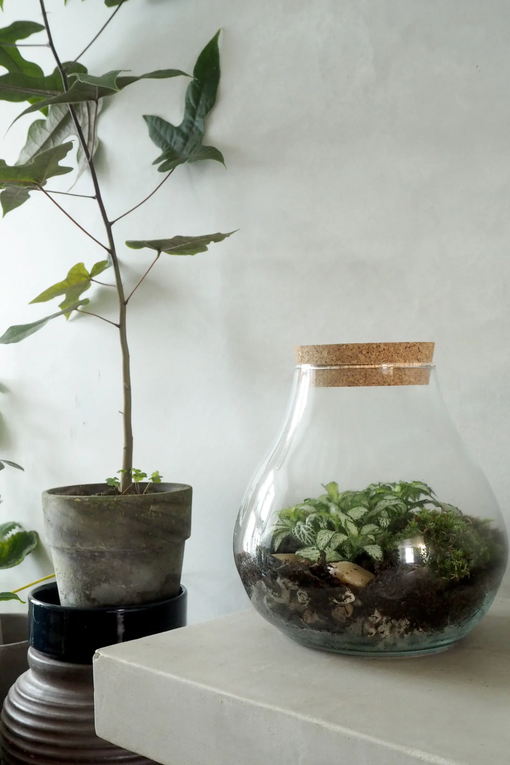 Terrarie no. 1 er vores bestseller og er kendetegnet ved et meget simpelt rundt glas med korklåg. Indeni finder du fine terrarieplanter, bestående af fittoria og bregne. Terrariets bund er smukt dekoreret med dansk mos og sten i naturfarver.