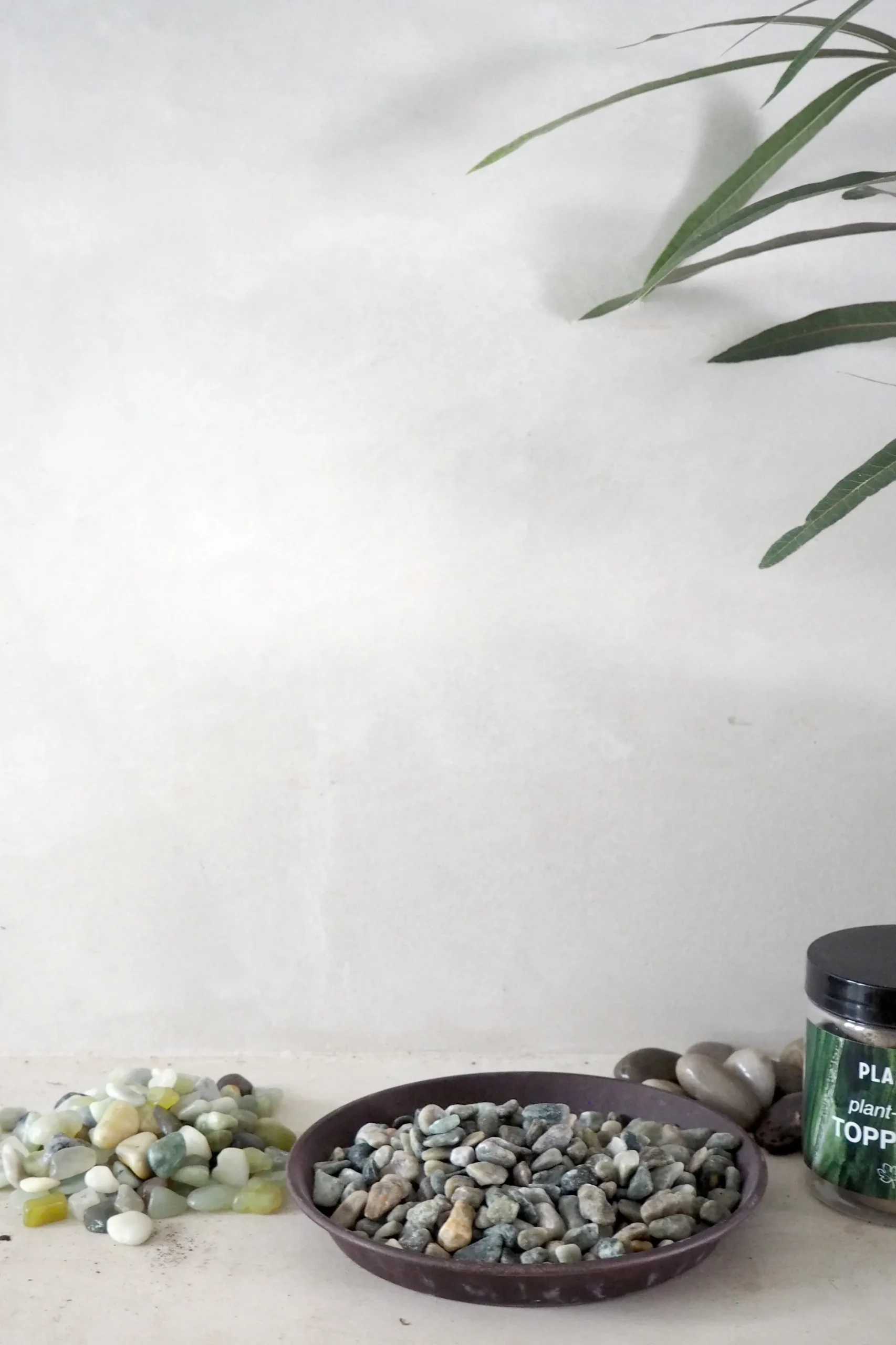Plant pot topping sten, der giver dine stueplanter et stilfuldt løft. Stenene dekorerer jordoverfladen, hjælper med at bevare fugt i jorden og beskytter samtidig mod skadedyr.