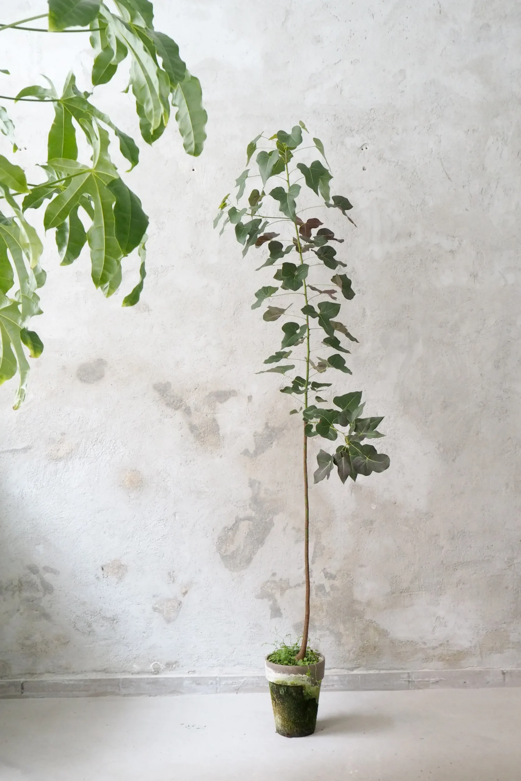 Det Australske Kærlighedstræ (kaldet Brachychiton på latinsk) er et elegant og smukt træ. Der er en lethed over den simple stamme med de karakteristiske blade, som har gjort den til en af de mest populære planter hos os lige nu. Vores danske avler har fire forskellige slags der adskiller sig i bladenes udseende. Dette Australske kærlighedstræ har aflange og stjerneformede blade. Går under kælenavnet Australien Bottle tree (Brachychiton rupestris på latinsk), da den som udvokset træ får en flaskeformet stamme.