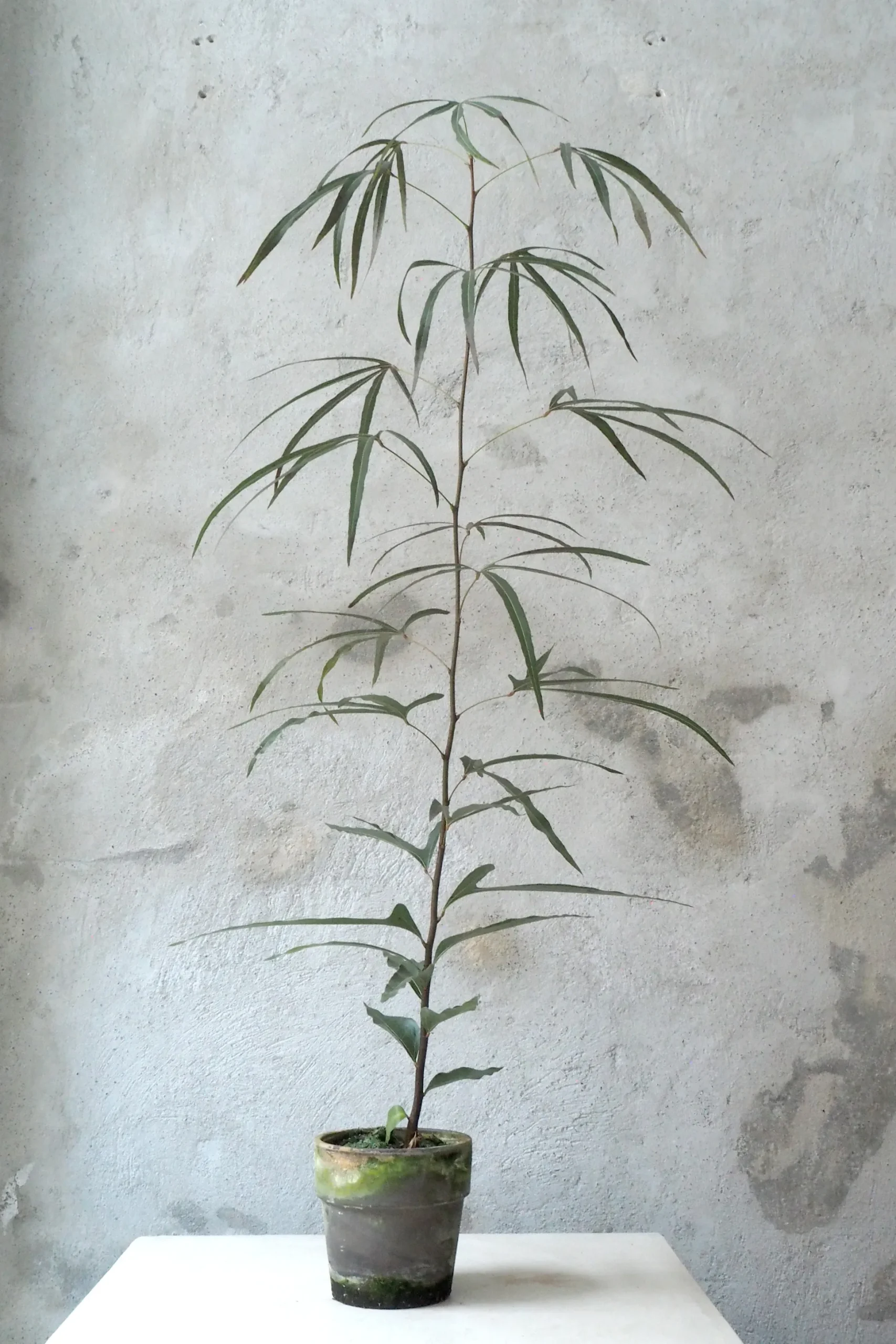Det Australske Kærlighedstræ (kaldet Brachychiton på latinsk) er et elegant og smukt træ. Der er en lethed over den simple stamme med de karakteristiske blade, som har gjort den til en af de mest populære planter hos os lige nu. Vores danske avler har fire forskellige slags, der adskiller sig i bladenes udseende. Dette Australske kærlighedstræ har blade som er formet som en trefod og en glat smuk overfladen.