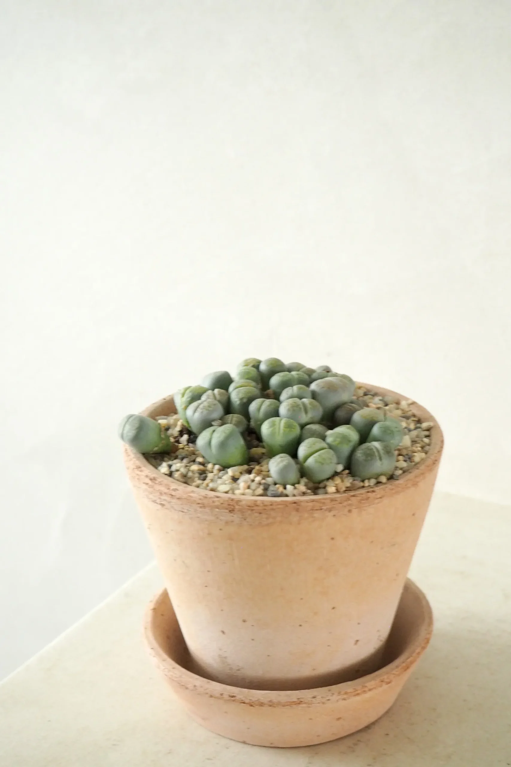 Andet godt tip: Brug veldrænet jord en kaktus- eller sukkulentblandin. Undgå at sprøjte vand direkte på planten, da den er meget følsom over for fugt. Lithops vokser langsomt, men kan blomstre med smukke, små blomster om efteråret.