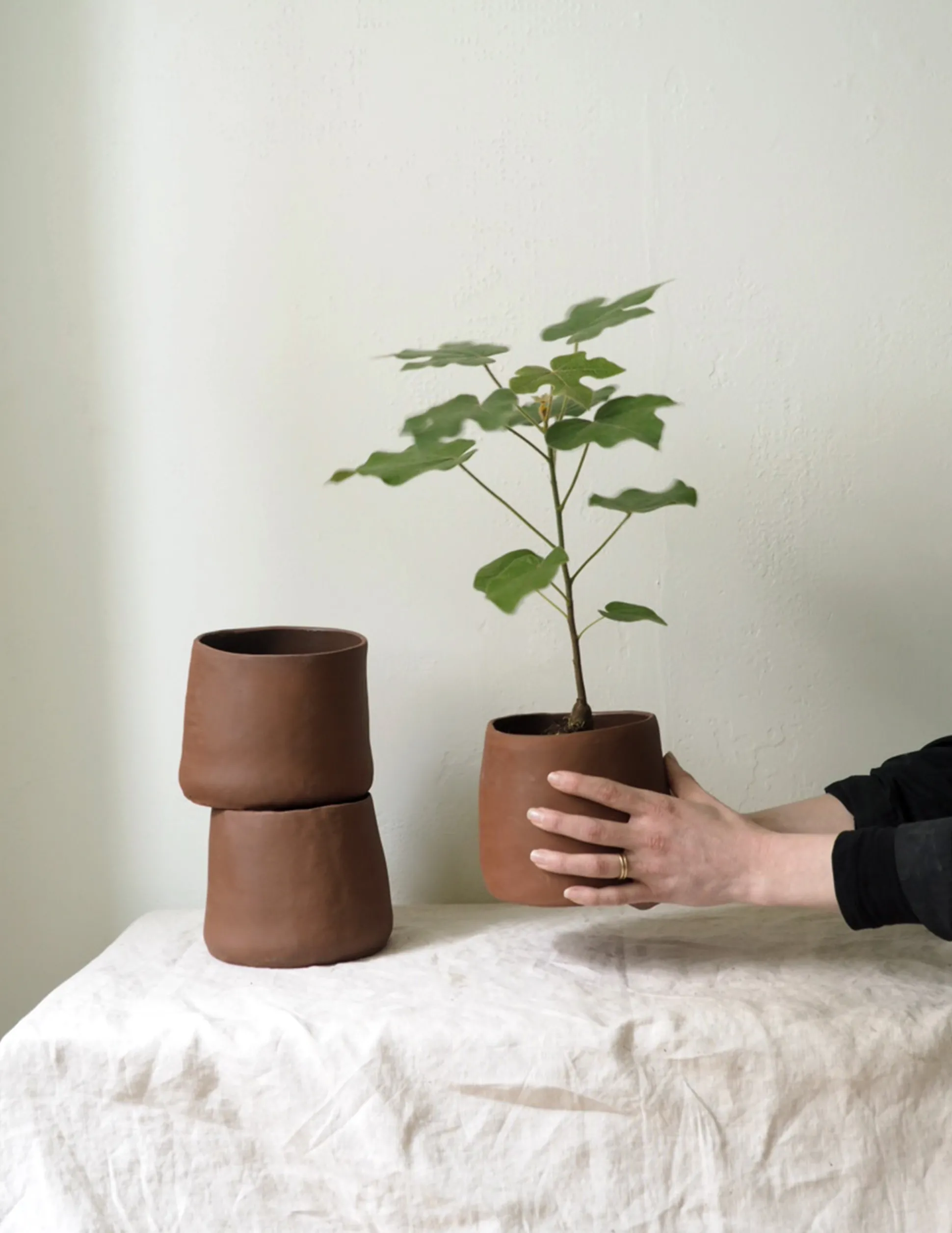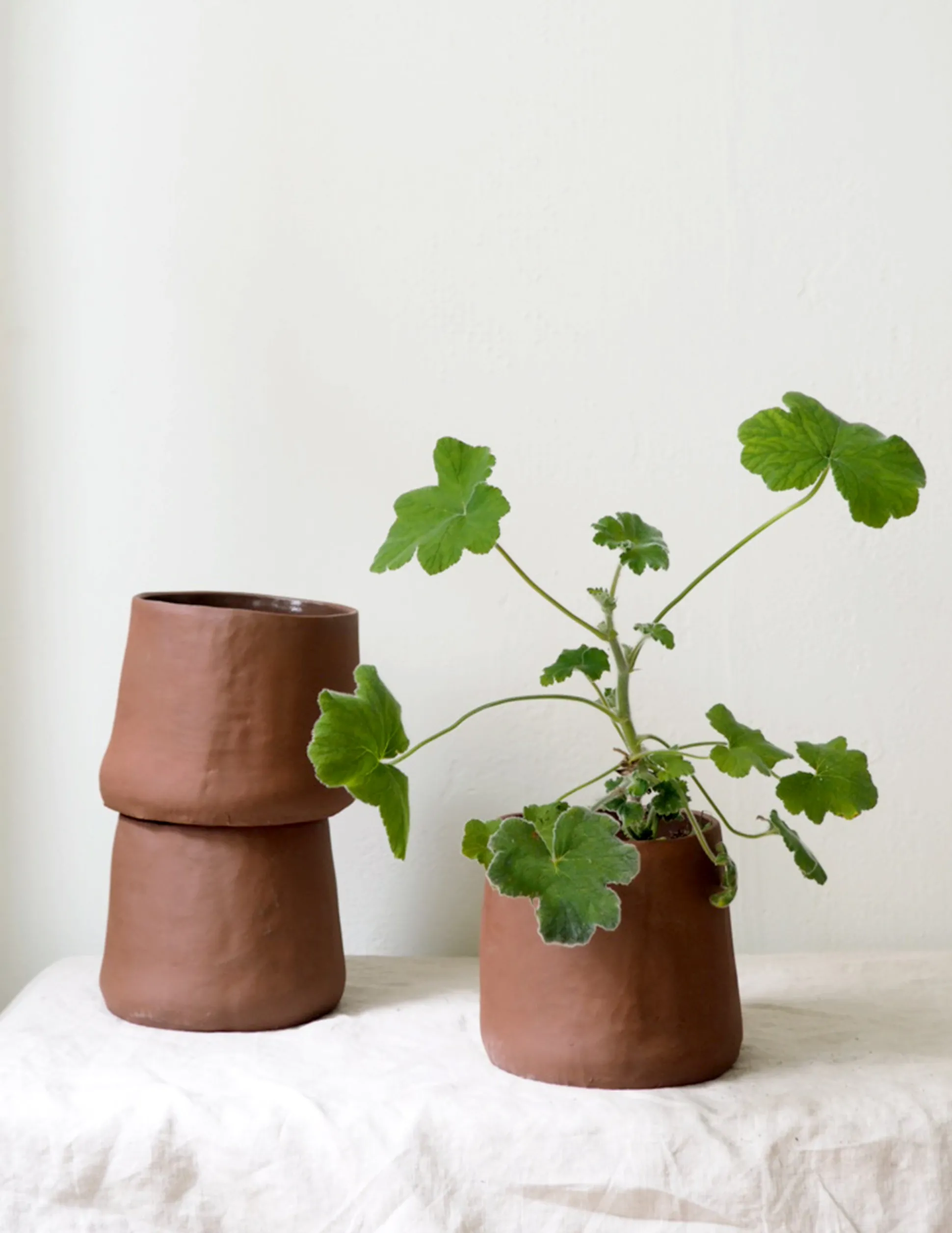 Maitonien krukken er en håndlavet stentøjskrukke i terrakotta ler lavet i Istanbul. Udenpå er krukken rå med små synlige tegn på, at hænder har formet den. Inden i er den glaseret med en gennemsigtig glasur, så den tåler fugt og vandet ikke trænger ud. Der er ikke noget drænhul i krukken, så vi anbefaler at bruge lidt legakugler i bunden, når du omplanter din plante.