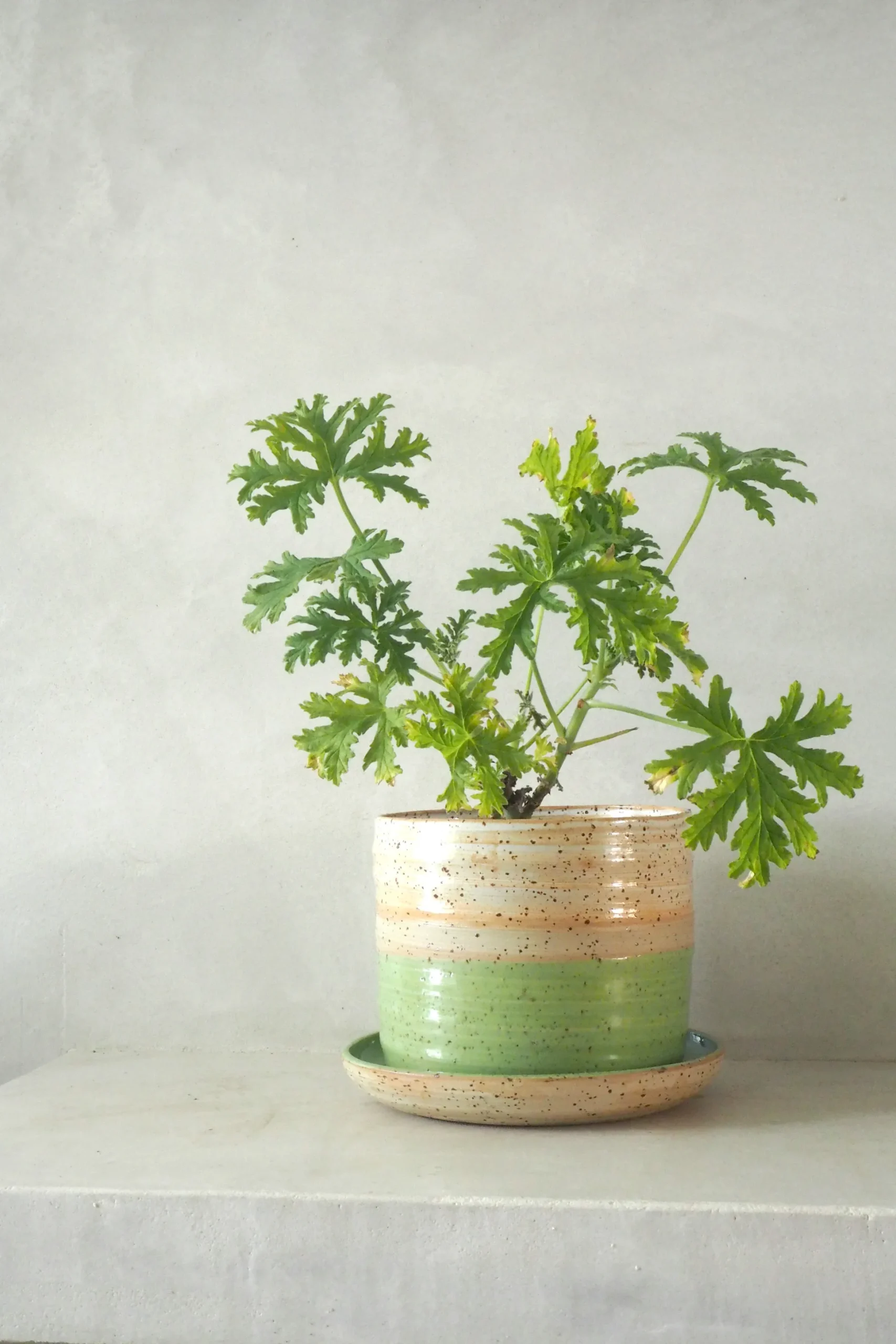 Krukken har en indbygget underskål og små drænhuller, så dine planter får optimale vækstbetingelser uden at du skal gå på kompromis med æstetikken.