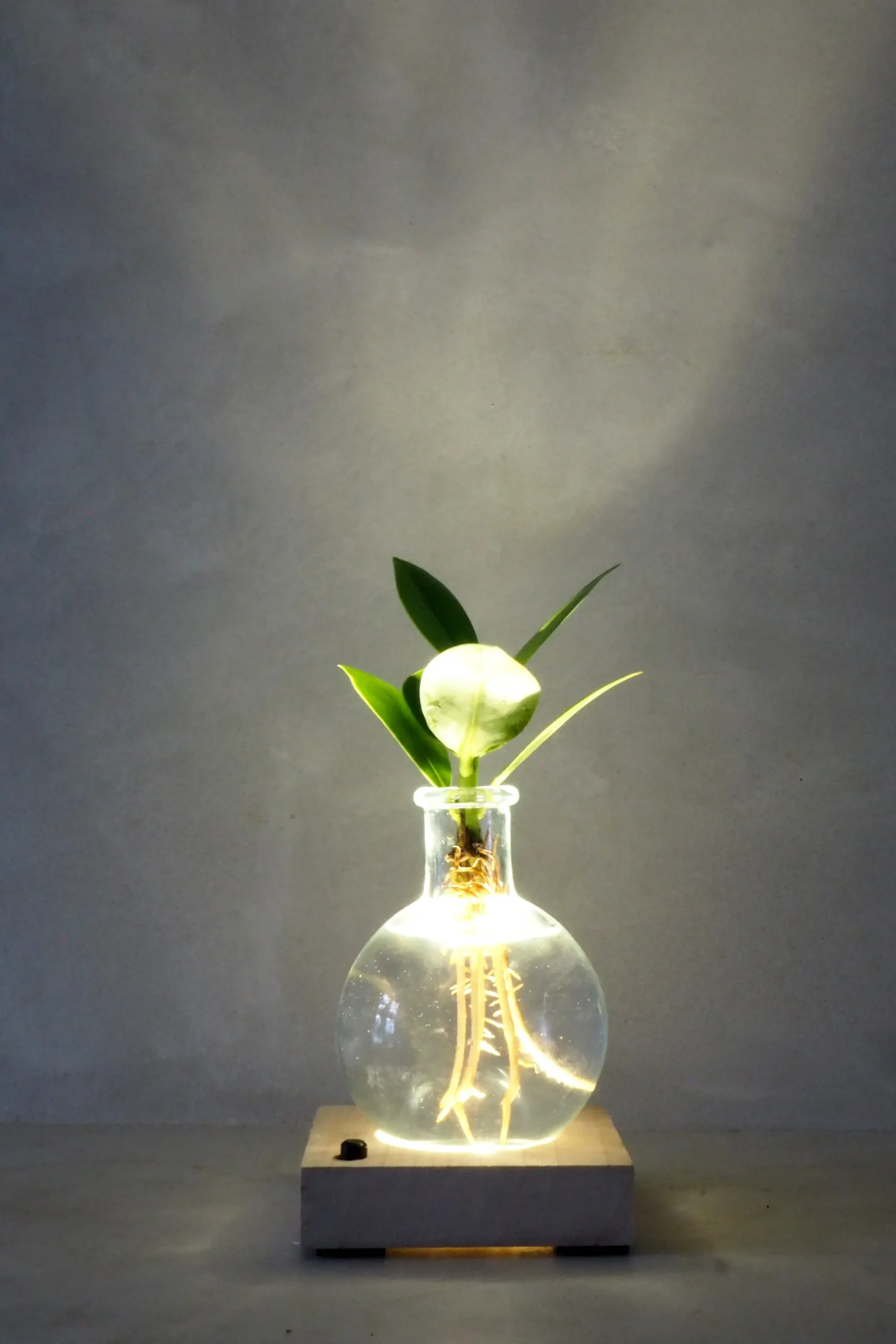 Lys dit hjem op med den fineste plantelampe. Lamperne fås med forskellige planter i, der alle trives fint med at vokse i vand. Lamperne kan bruges på fx natbordet eller i reolen og lyser op, så rødderne bliver endnu mere tydelige.