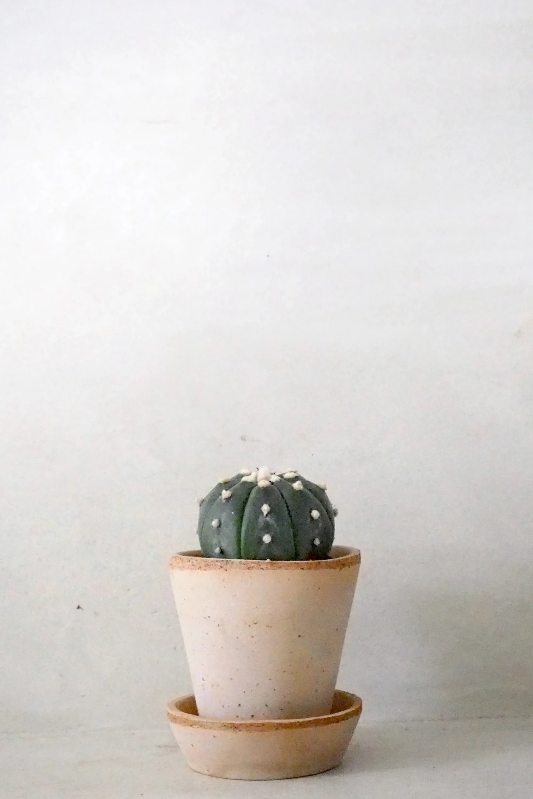 Astrophytum asterias, bedre kendt som søpindsvinkaktus, er en usædvanligt smuk og karakterfuld kaktus. Den kendetegnes ved sin runde, flade form og de symmetriske ribber – om får den til at ligne et søpindsvin.