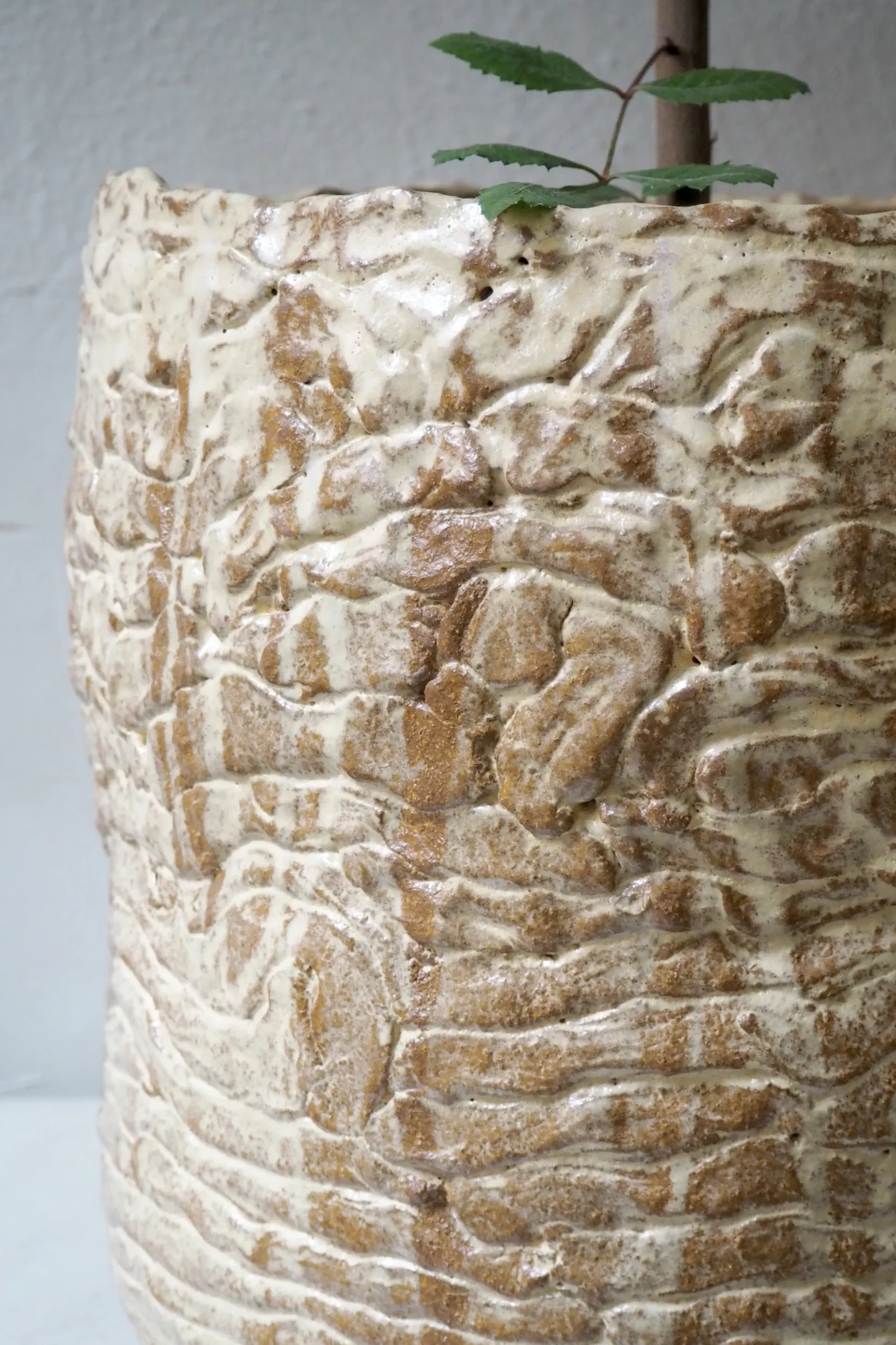 Wood er en serie af håndlavede oversize krukker. Med inspiration i træets stamme og årer har keramiker Stine Mei skabt en række smukke og sanselige krukker i fem forskellige farver og former. Wood krukken er velegnet til store planter og små træer til gulvet. Krukkerne kan variere en smule i form og størrelse, da de er håndlavede.
